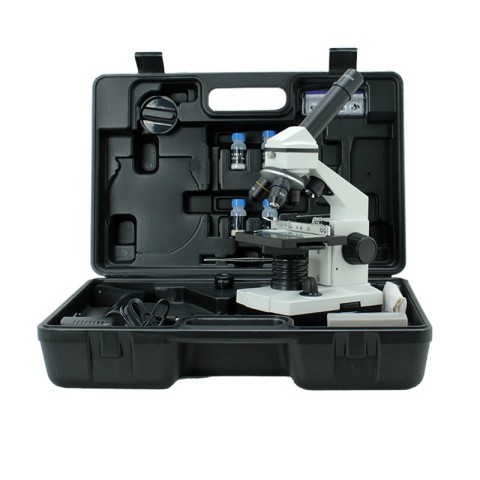 Mikroskop je dodáván s bohatou výbavou v pevném plastovém kufru pro pohodlné a bezpečné uschování a přemísťování. Výbava obsahuje vše, co je potřeba k provádění zajímavých pokusů s mikroskopem. V balení najdete hotové preparáty, sklíčka a výbavu pro výrobu vlastních preparátů, lahvičky na vzorky atd. Součástí je také plastový obal, který chrání mikroskop před prachem.